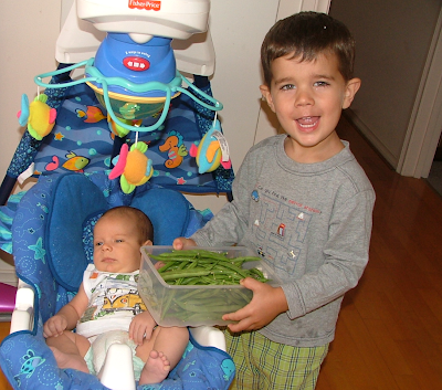 Jack ran inside to show William his produce this morning. It's a shame the only way we can get him to eat them is cut up in spaghetti bol.