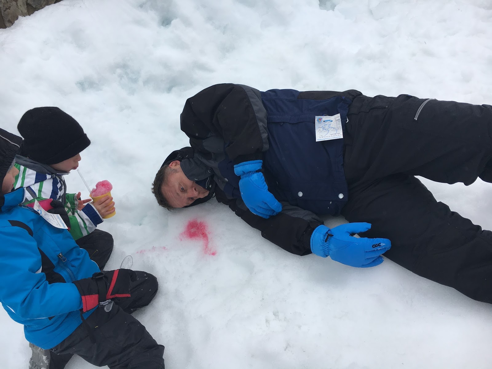 Simon loved the snow and the boys thought it was hilarious when we spilled some cordial to make it look like a crime scene.